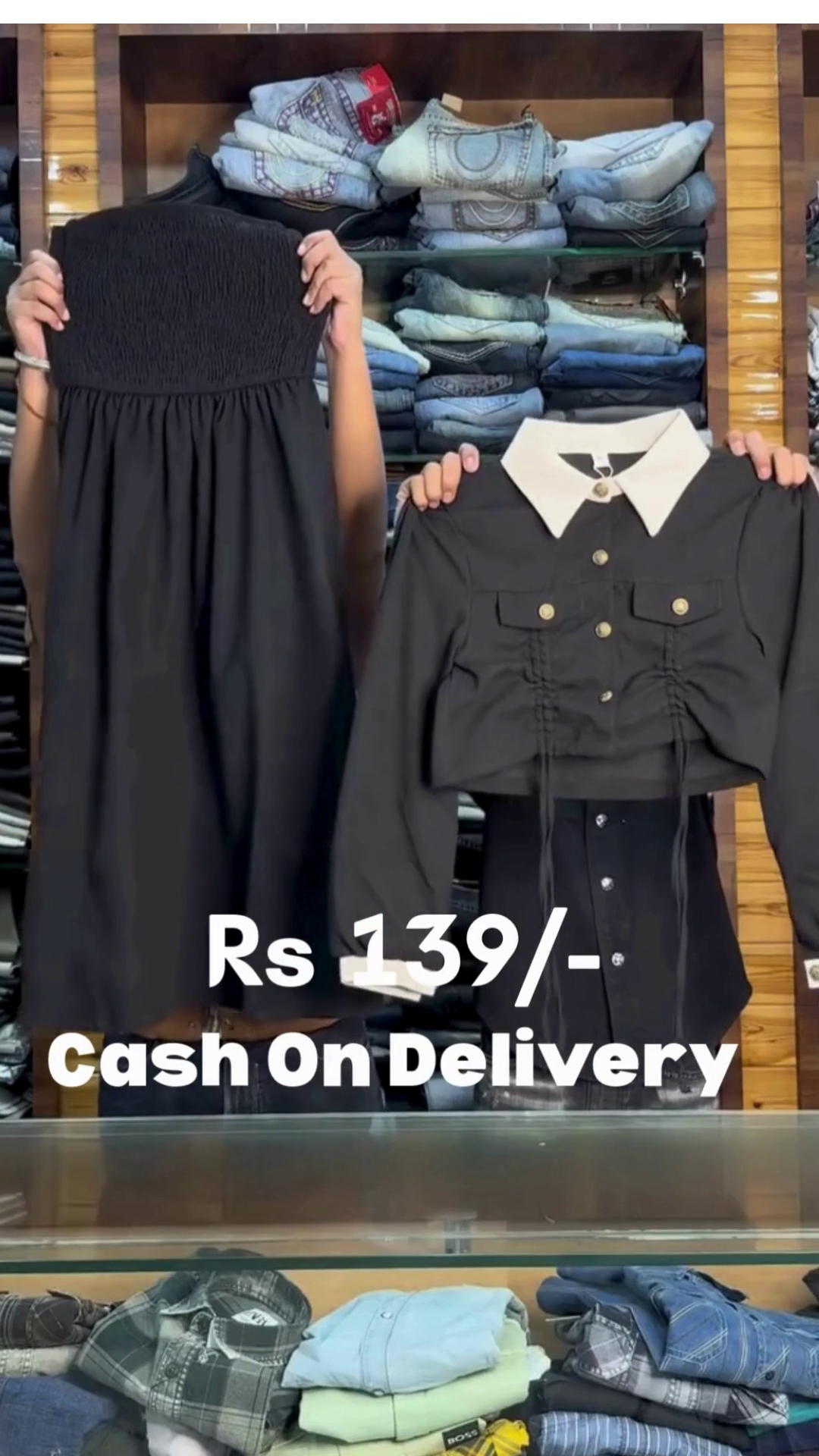 This chic beige co‑ord set 🤎 features a smocked elastic tube skirt and a cropped long‑sleeve jacket with a contrast white collar 🤍, giving a cute yet polished look. The skirt has a stretchy ruched waistband that fits comfortably around the bust or waist, flowing into a soft A‑line silhouette that moves beautifully as you walk. The cropped jacket includes front flap pockets, metallic buttons, and long sleeves, making it perfect for layering over fitted tops or wearing as a set. Thin hanging ties add a trendy detail at the hem. Ideal for college looks, brunch dates, or casual parties, this outfit pairs well with sneakers, boots, or sandals. Accessorize with a mini handbag and delicate jewelry for a complete aesthetic vibe. ✨