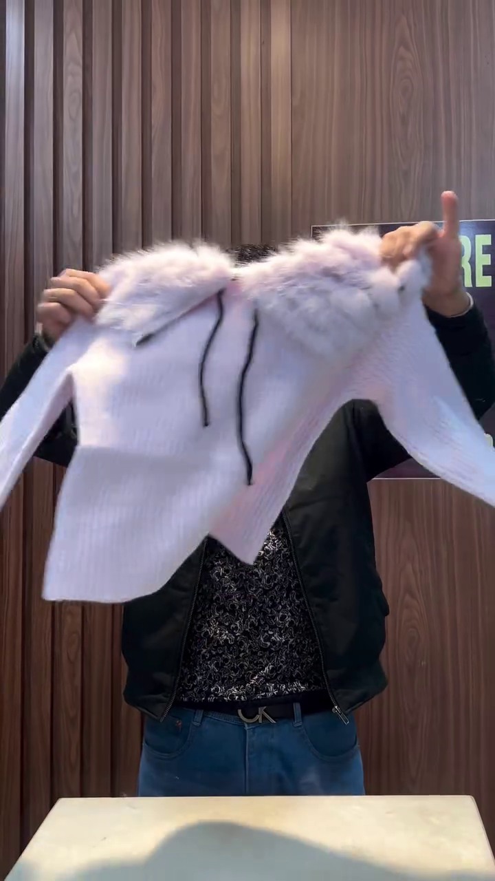 Cocoa Whirl: Cropped Knit with Fuzzy Collar & Autumn Soulโ€ ๐Ÿ‚๐ŸคŽ๐Ÿงถ