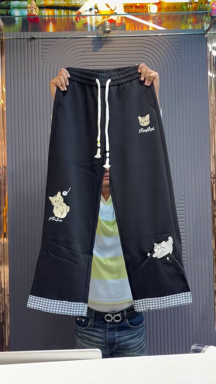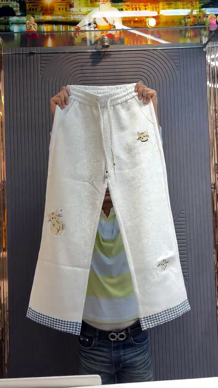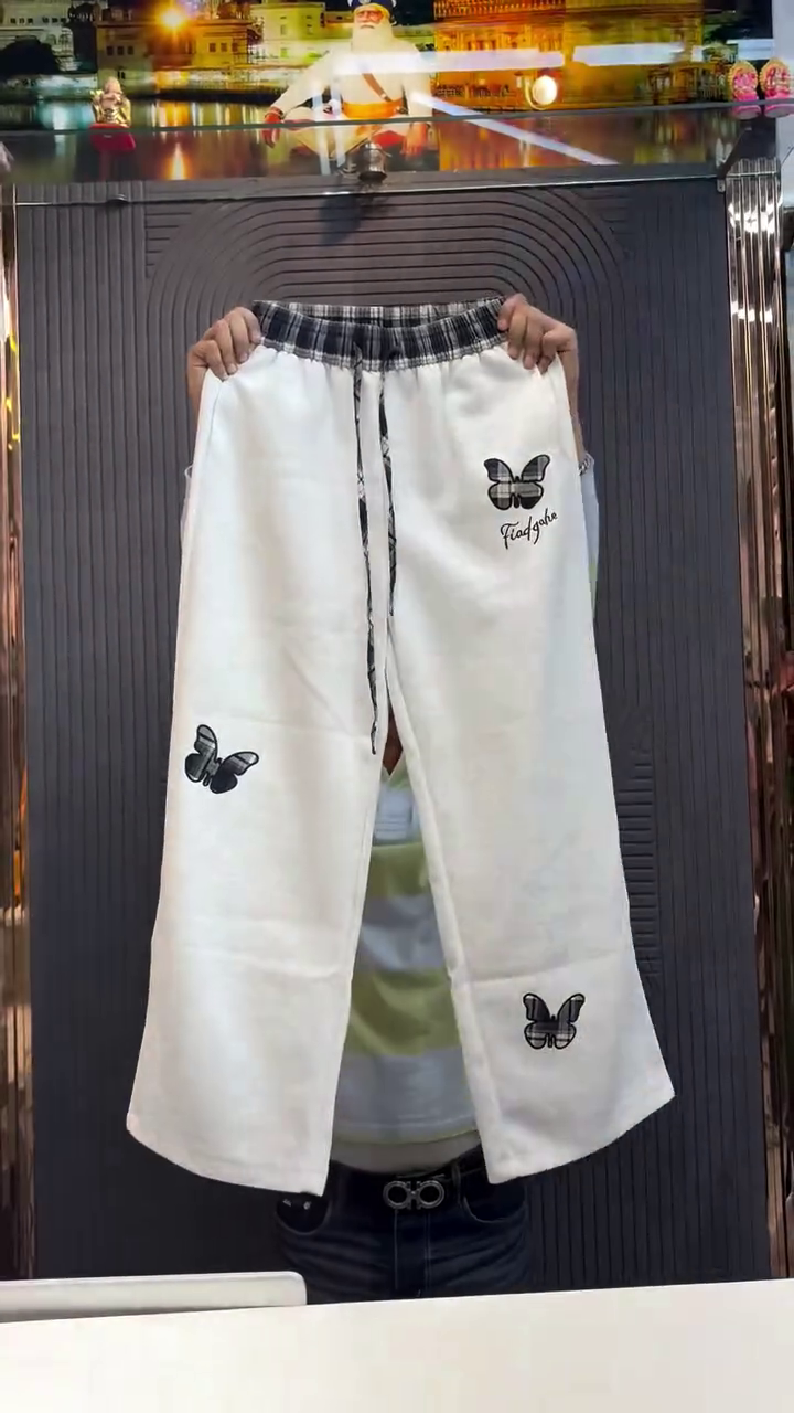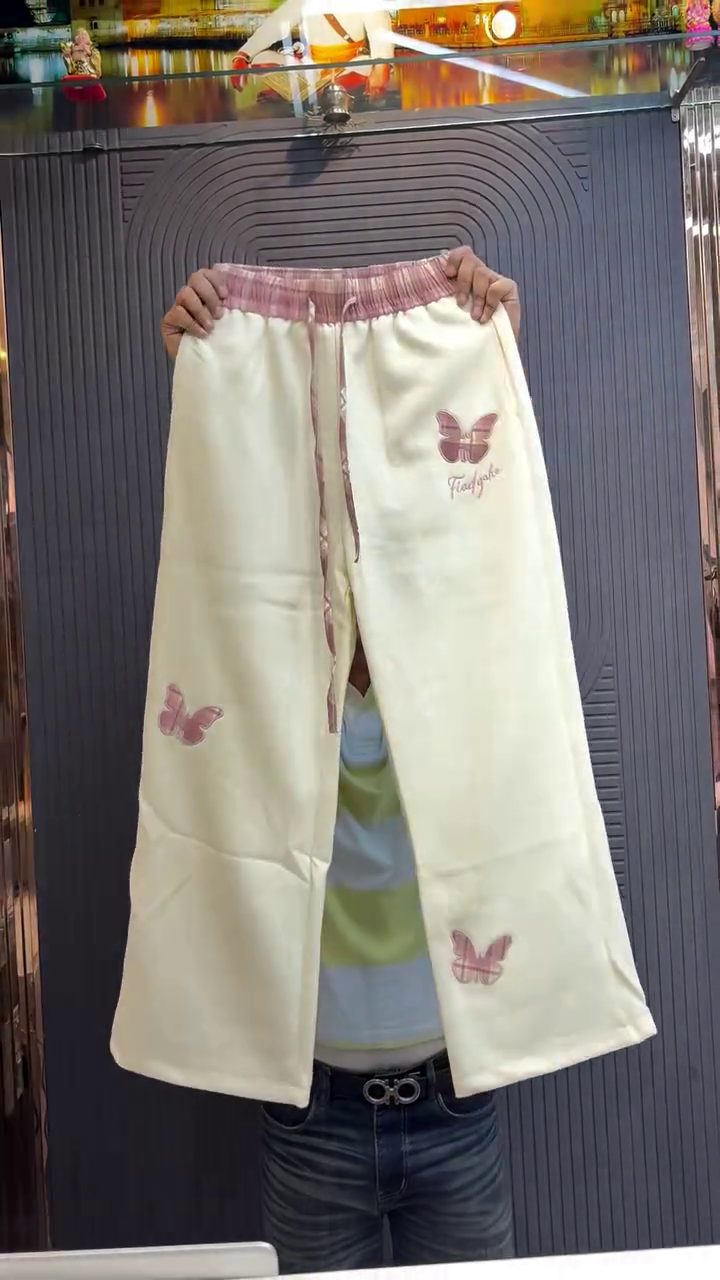 πŸ€πŸ¦‹ Soft cream lounge pants designed with delicate pink butterfly prints and stylish elastic waistband with adjustable drawstring πŸŽ€. The wide-leg relaxed silhouette ensures maximum comfort 😌 and effortless movement πŸ’ƒ.