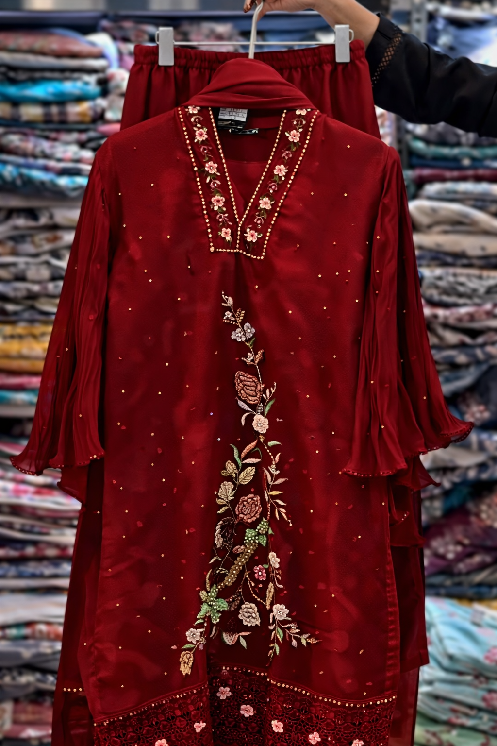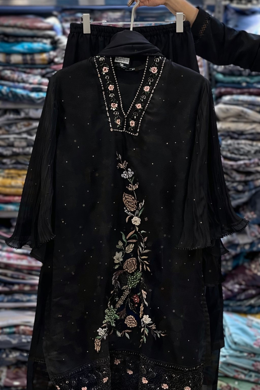 • Elegant floral embroidery with bead work