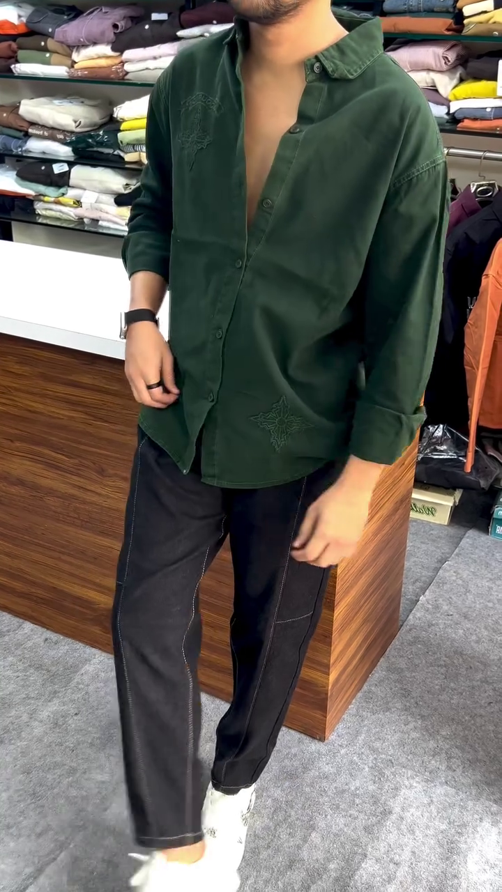 Make a statement in mustard yellow with this embroidered button-up masterpiece πŸ’›πŸ‘•. Featuring intricate motifs on the chest and lower hem, this shirt blends royal flair with street-ready swagger πŸ‘‘πŸšΆ. The embroidery adds depth and storytelling, while the color radiates warmth and individuality β˜€οΈπŸ§Ά.