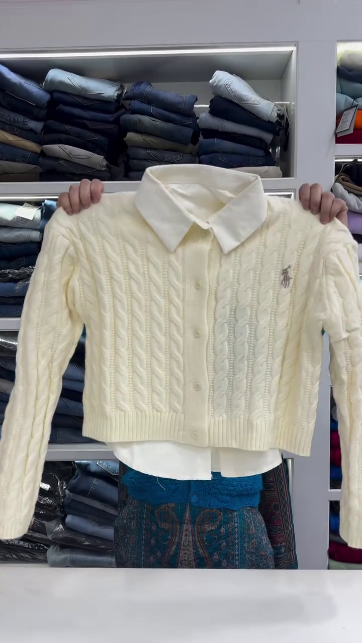 The chest embroidery has been removed to keep the focus on the craftsmanship and comfort. Whether styled with jeans or trousers, this cardigan is your go-to for timeless layering 🧵👖.