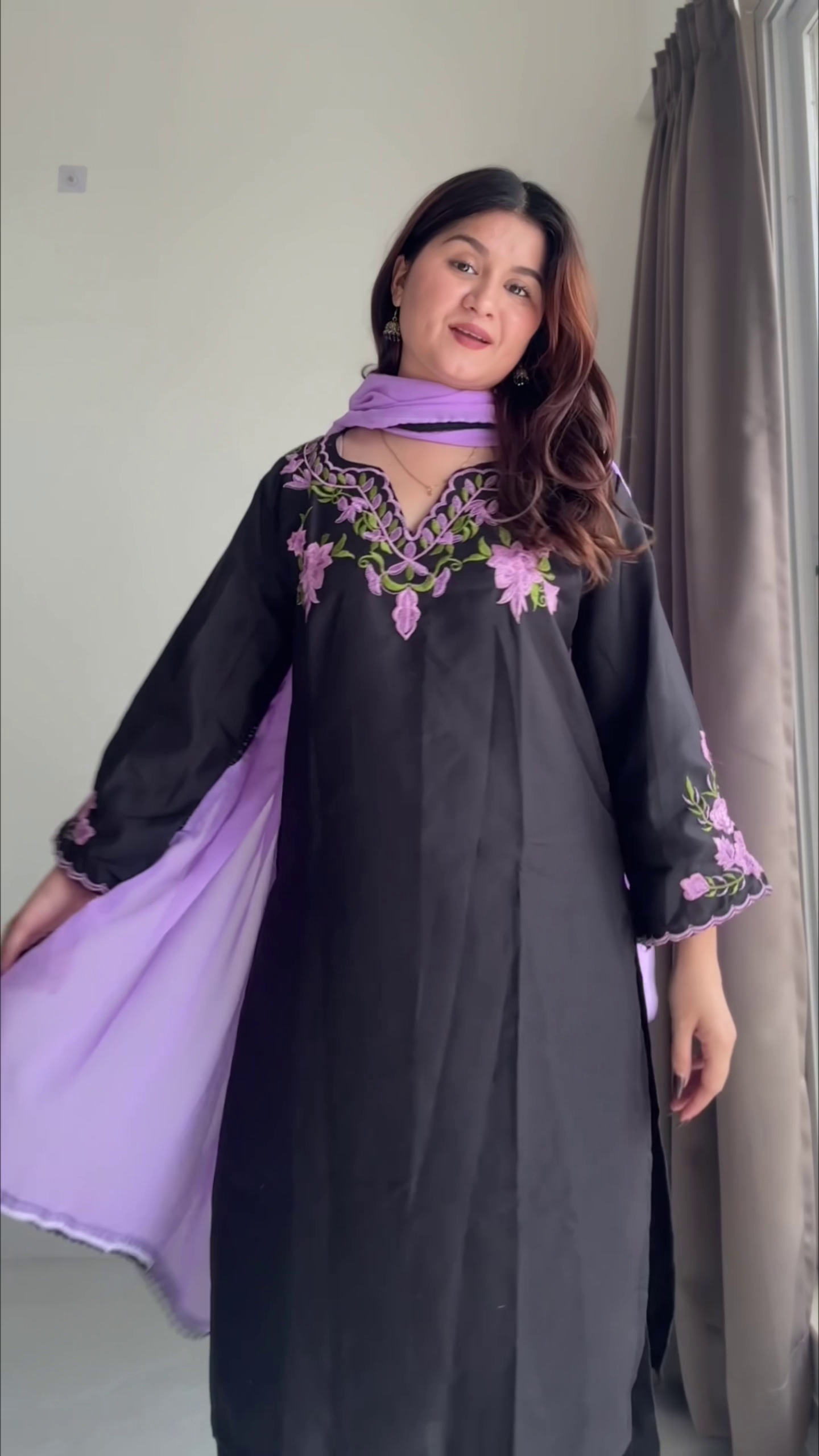 Complementing the kurta is a soft lavender chiffon dupatta ππ§£ that adds a beautiful color contrast against the deep black base. The airy drape flows effortlessly, creating a graceful and elegant finish to the complete look π¬οΈβ¨. Pair it with statement earrings and minimal heels for a refined traditional ensemble π π.