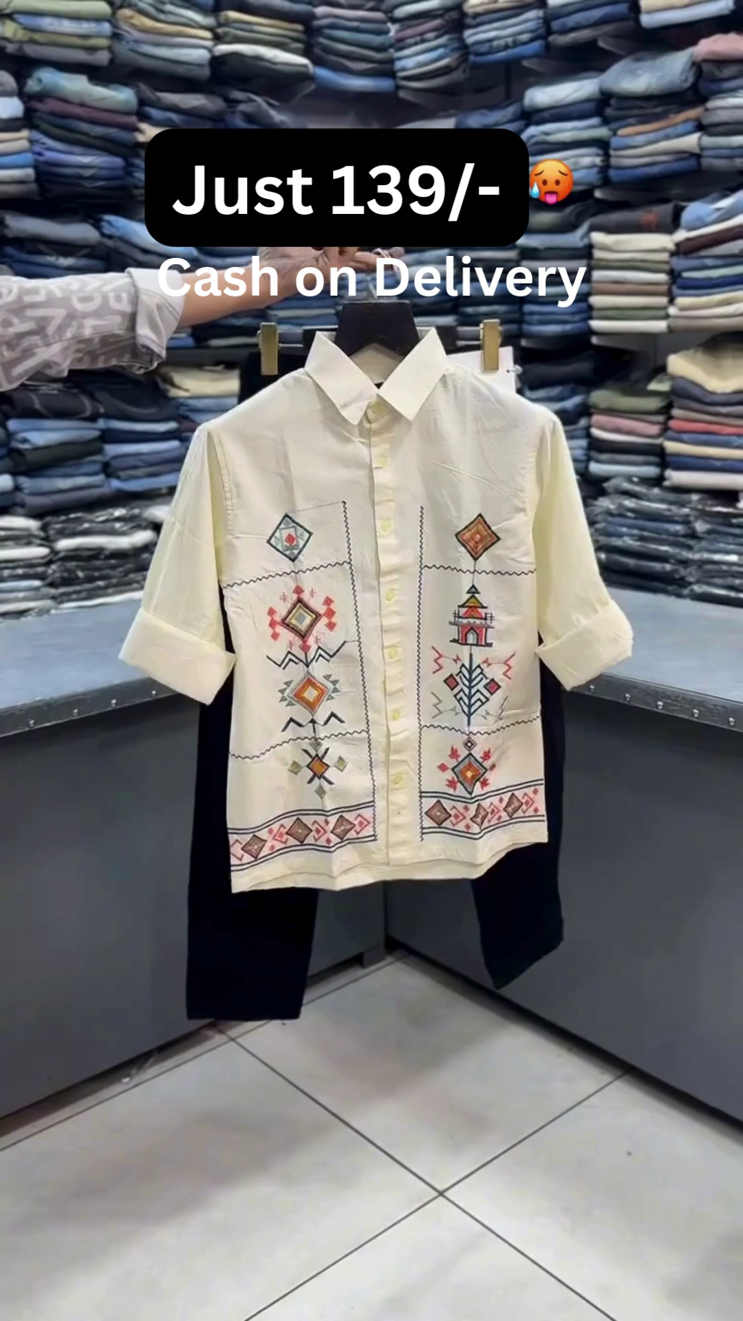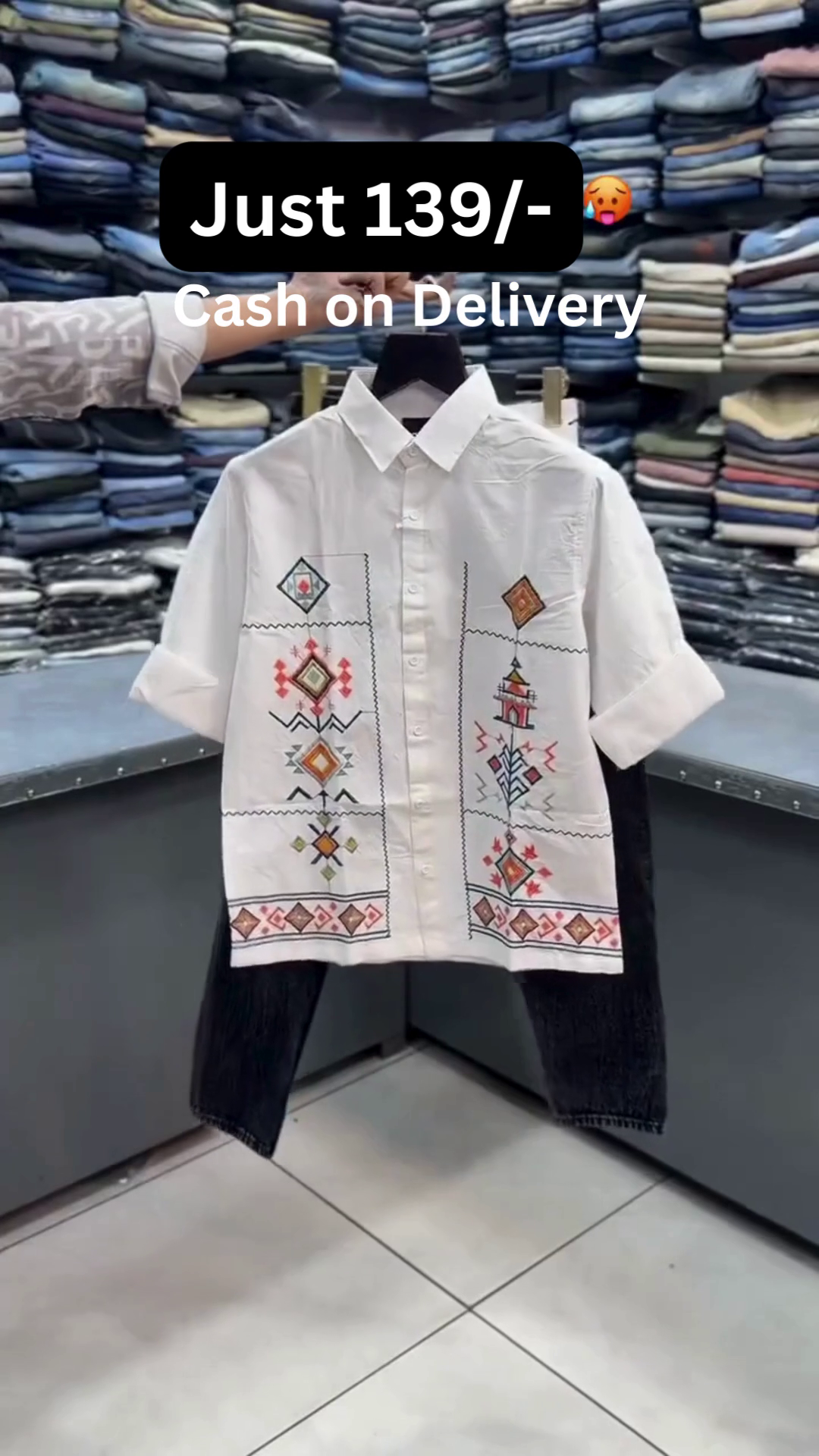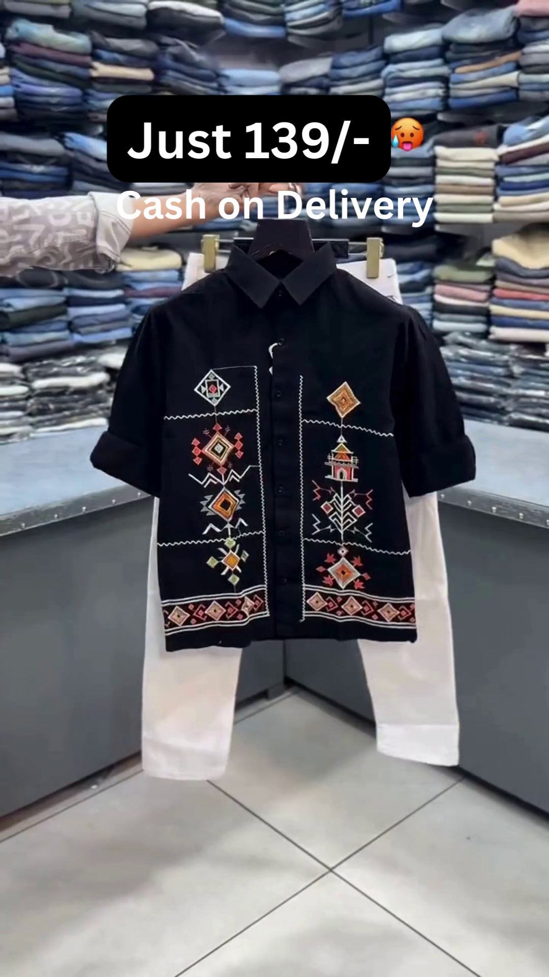 🀍✨ This stylish combo features a crisp white half-sleeve shirt designed with intricate geometric and ethnic-inspired embroidery on the front panels 🧡🎨. The shirt comes with a structured collar πŸ‘”, front button closure πŸ”˜, and relaxed breathable fabric 🌬️ making it perfect for festive occasions πŸŽ‰, casual outings πŸšΆβ€β™‚οΈ, and smart ethnic styling πŸ’«.