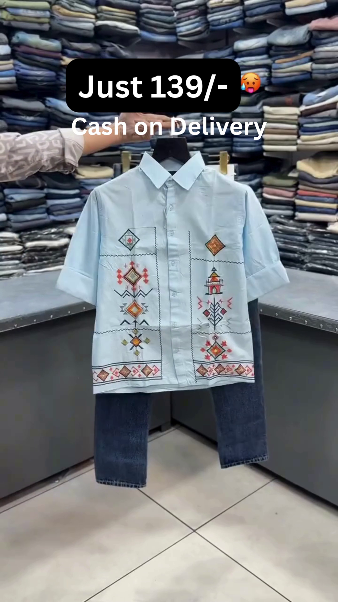 Be the first to review “Premium White Half-Sleeve Ethnic Embroidered Geometric Motif Shirt with Dark Denim Straight Fit Jeans Combo Set”