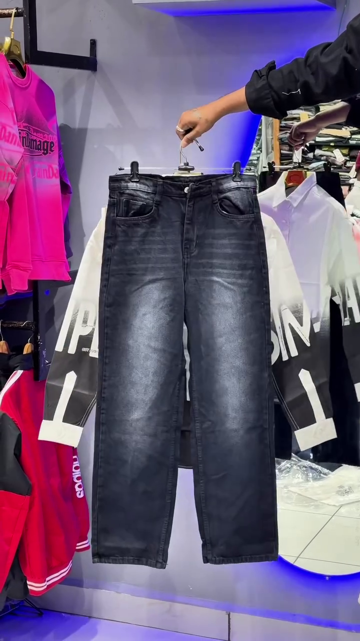 The dark wash denim jeans add balance to the outfit with their clean straight-fit silhouette. The jeans provide durability and everyday comfort while complementing the bold shirt design.