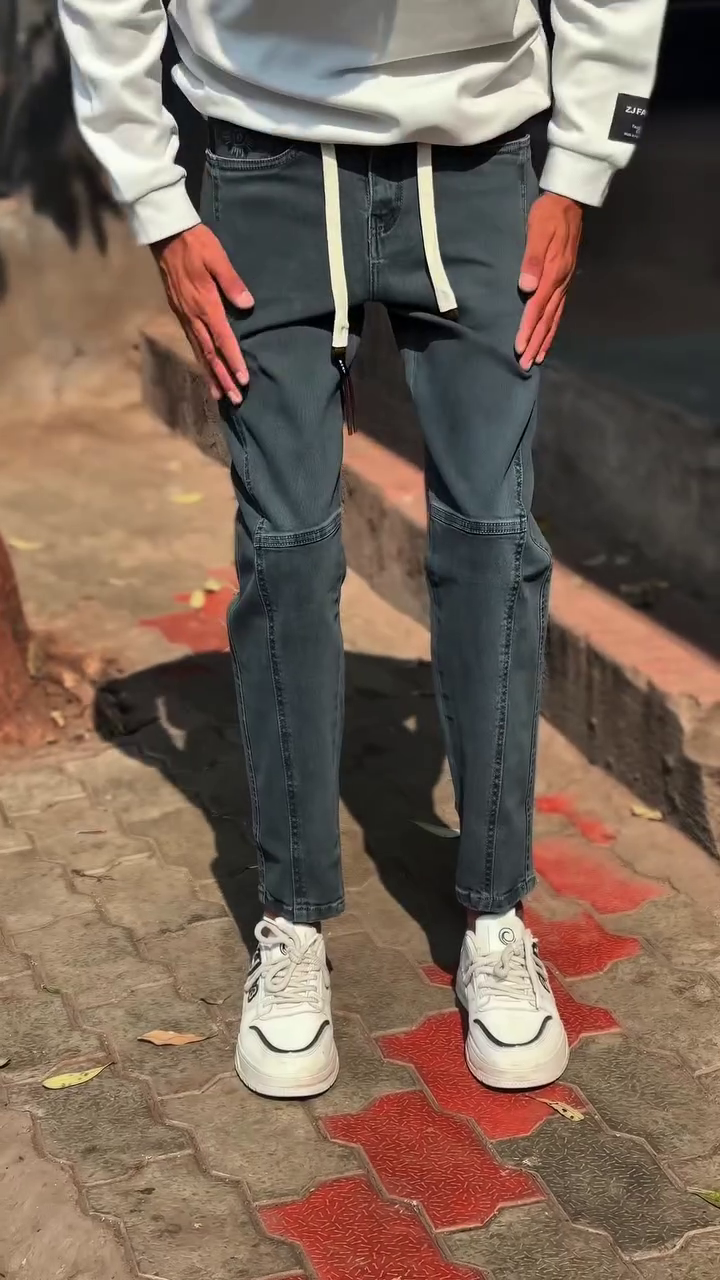 These dark blue jogger-style jeans are stitched for movement and styled for impact π§©π. With horizontal knee seams and a drawstring waist, they offer both structure and stretchβideal for urban explorers and fashion-forward thinkers ποΈπ§ .
