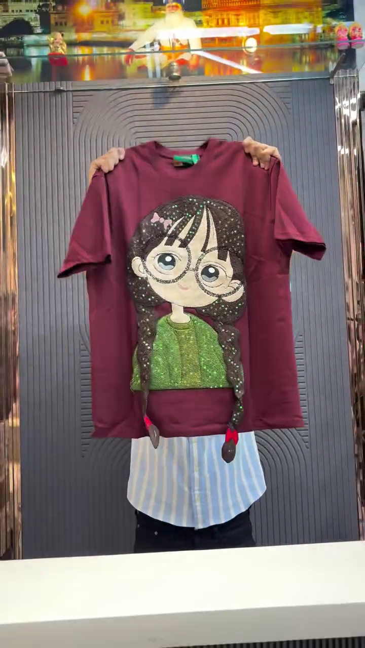 πŸ’›πŸŽ¨ A bold and playful oversized yellow T-shirt featuring a large textured cartoon-style girl graphic with braided 3D detailing πŸ‘§βœ¨. The applique work gives a premium raised effect 🌟 making it stand out.