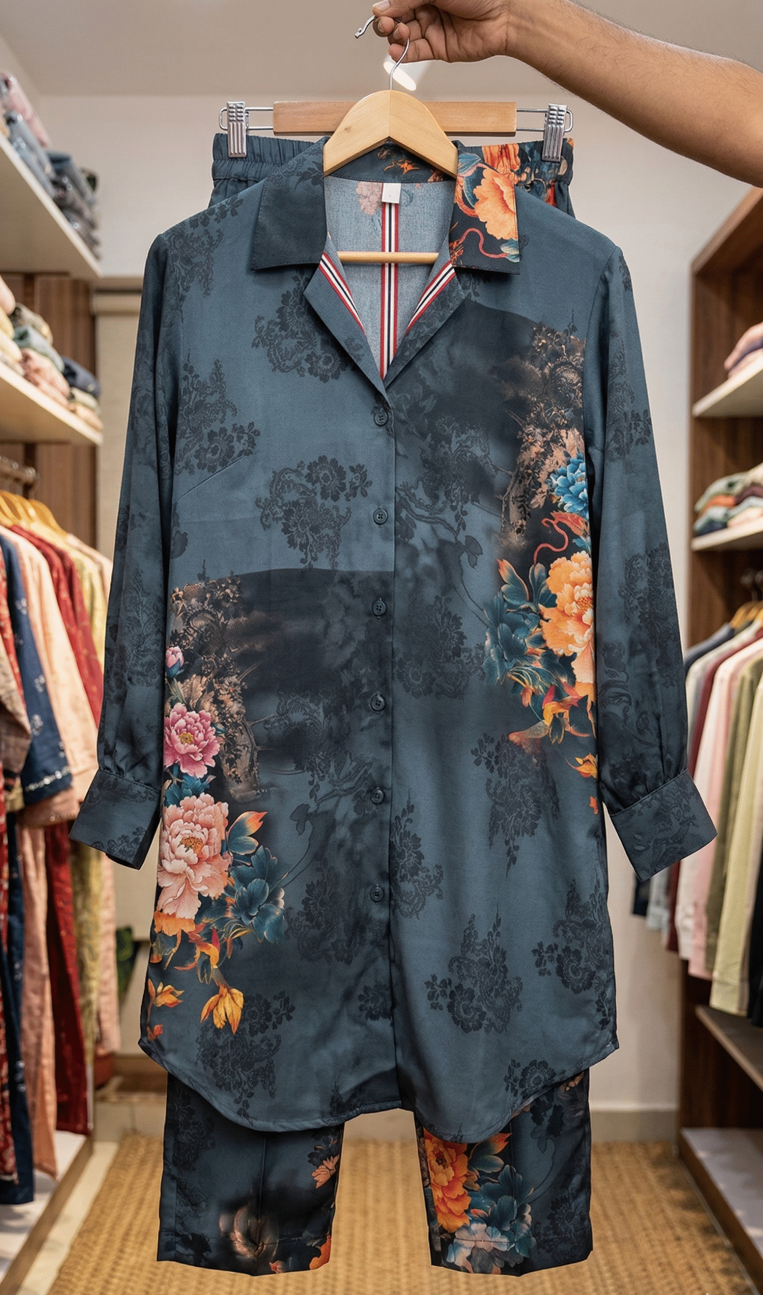 Its unique floral pattern gives a premium and eye-catching look, making it easy to pair with jeans, trousers, or skirts for a complete stylish outfit.